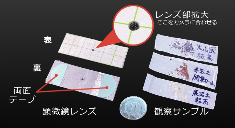 日本各地の火山灰を観察するというワークショップにおいて、スマートフォンやタブレットのカメラ部分に貼り付けるために、テープを活用したとのことです。