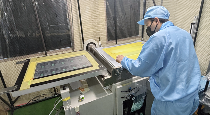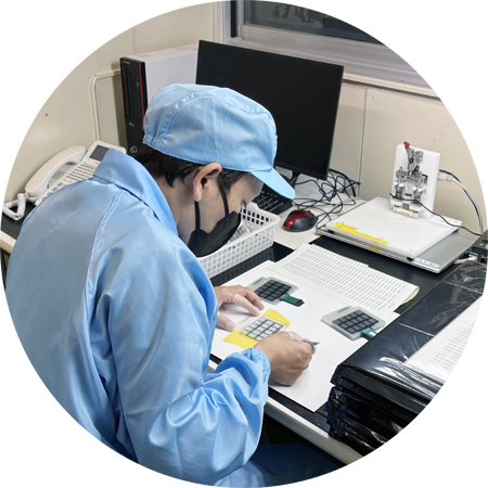 機械による貼り合わせ、加工業務、電気検査などを行っています。